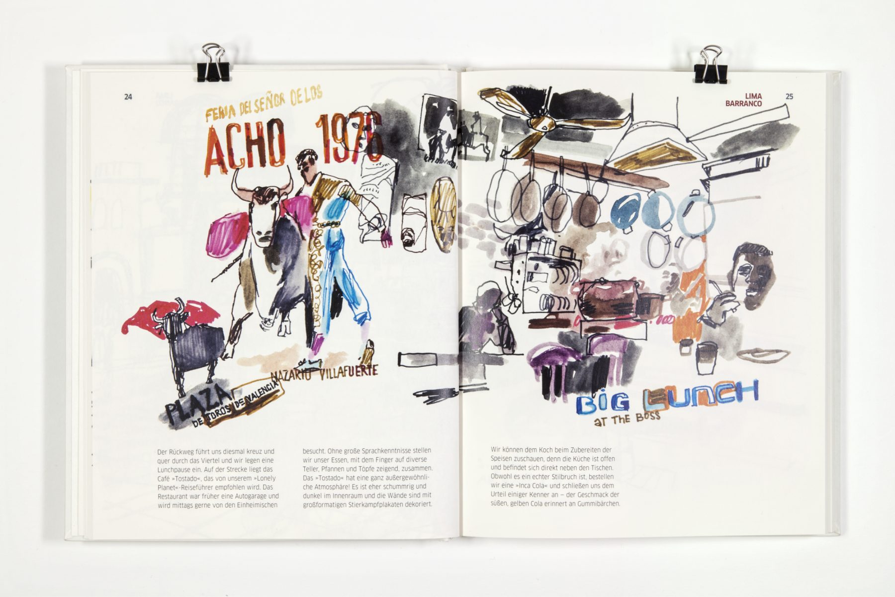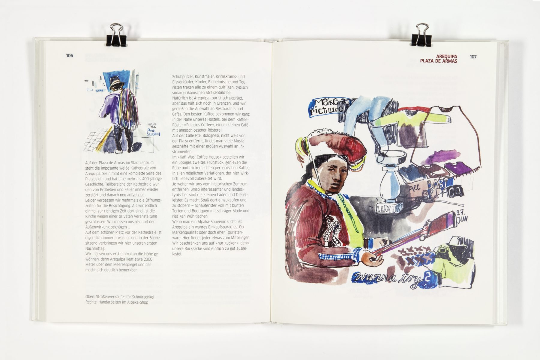PERU – WARTET MAL ist ein illustrierter Reisebericht mit vielen praktischen Tipps, eine illustrierte Reportage für Liebhaber*innen des gezeichneten Buchs, für Urban Sketcher und Bilderbuch-Begeisterte. Sehnsuchtsliteratur für Südamerika-Schwärmende, Perukenner*innen und Fernweh-Leidende … Reisen im Kopf: Besonders in Zeiten der Reise-Enthaltsamkeit vermittelt das Buch mit rund 90 Zeichnungen/156 Seiten und dem begleitenden Bericht von Juliane Groß sehr authentische Einblicke in das Land an der Westküste Südamerikas. Über die Titelwahl: Wartet mal! – Diese Worte hörte die reisende Familie während ihrer siebenwöchigen Reise durch Peru ständig, wenn der Illustrator, Peter Pichler, wieder einmal das Skizzenbuch zückte. Ausgewählte Illustrationen sind jetzt im Freistil #7: Das Buch der Illustration veröffentlicht! „Freistil präsentiert herausragende neue Arbeiten von 157 Illustrator*innen aus aller Welt. Bilder, die mehr sagen als tausend Worte.“*